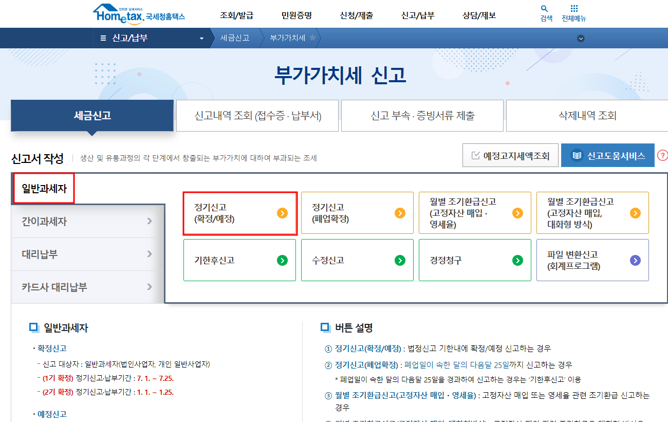 홈택스 통한 부가세 신고 방법