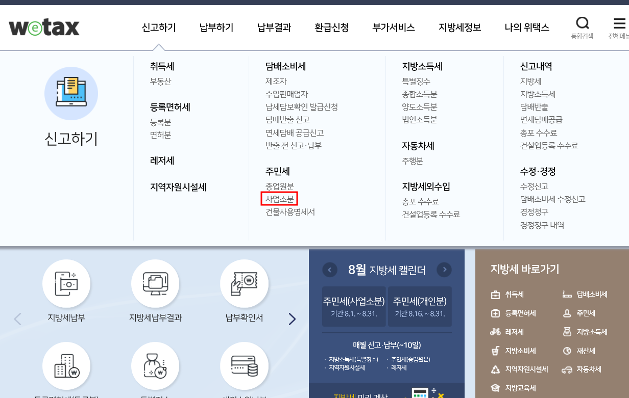 사업소분은 납세자가 직접신고 해야하는 신고세목으로 8월 1일부터 8월 31일까지 관할 구청에 신고·납부해야한다.